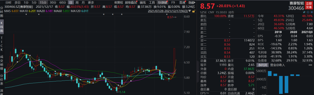 赛摩智能最近连续2个交易日“20厘米”涨停。