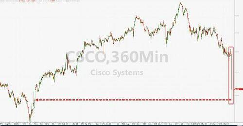 计算机网络设备制造巨头思科预计2022自然年二季度收入下滑,分析师预期增长,CEO称供应、而非需求问题是未来营收下降主因。盘后大跌20%为公司史上最深。纳指100的ETF QQQ盘后再跌0.5%。分析称,高通胀和财报不佳正在吓坏投资者。