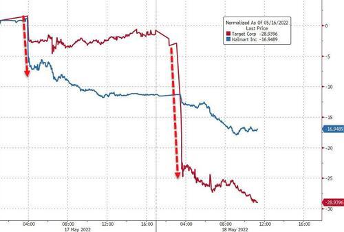 美国第二大零售百货集团塔吉特一季报“爆雷”,供应链问题、燃料成本上涨和高通胀时代的非必需品销售低于预期均削弱了盈利能力,盘中跌超26%创1987年10月“黑色星期一”以来最差,收跌近25%至2020年10月来最低,抹去疫情以来大部分涨幅,年内跌幅从7%扩大至超30%。