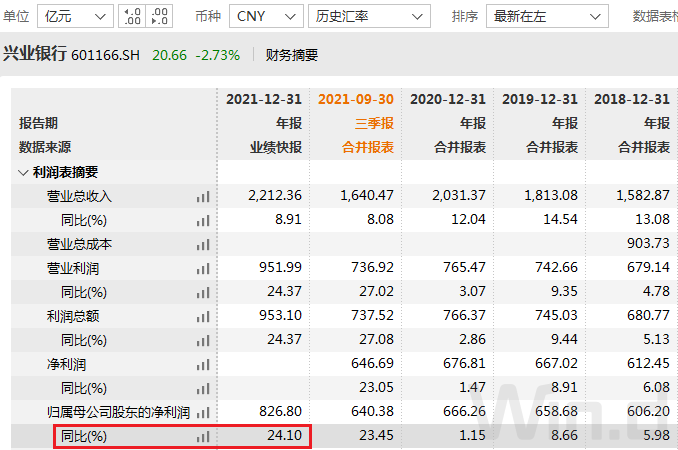 不仅仅是招行一家业绩爆表,兴业银行2022年1月10日晚间发布业绩快报称,2021年归属于母公司所有者的净利润826.8亿元,同比增长24.1%;营业收入2212.36亿元,同比增长8.91%;基本每股收益3.77元,同比增长22.4%。