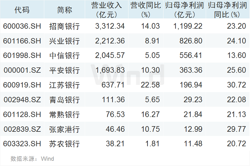 包含上述两家银行,近段时间,已有9家银行公布了业绩快报,除中信银行归母净利润增幅为13.60%外,其余银行增幅均超过20%,其中江苏银行归母净利润增幅甚至达30.72%。从已公布业绩快报的银行来看,业绩增速甚至超过很多成长型公司。