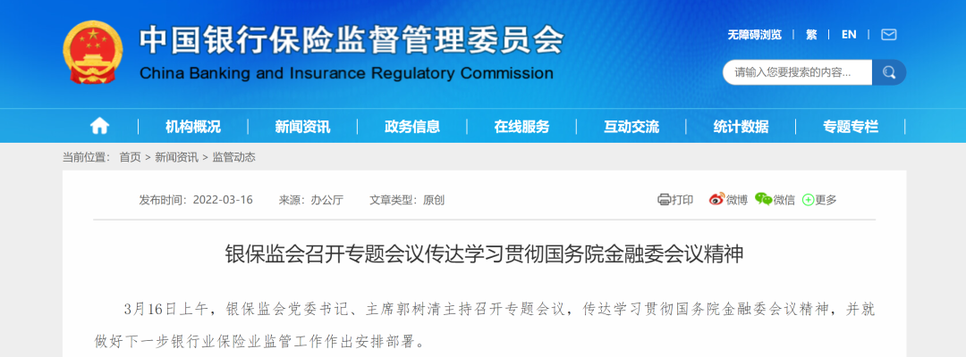 银保监会党委书记、主席郭树清主持召开专题会议,传达学习贯彻国务院金融委会议精神,并就做好下一步银行业保险业监管工作作出安排部署。
